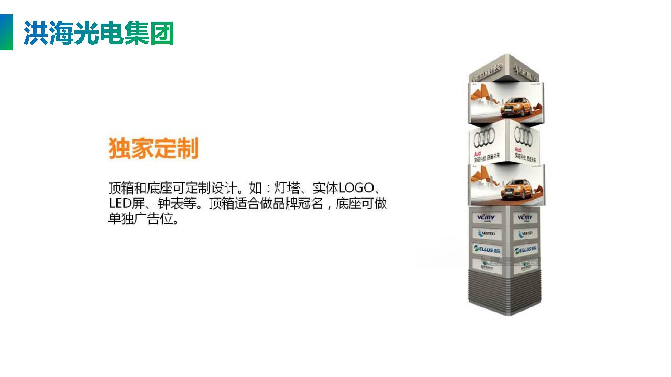 具體來說是:LED旋轉魔方屏是由三角形或四方形LED顯示屏箱體組合,在旋轉支撐、不繞線導電刷、轉動花樣軟件編程等多個系統配合下,使三個三角形或四方形LED顯示屏按照電腦編制的程序---不同時間花樣轉動---定格在一個平面,展示三個視頻畫面。相比傳統顯示屏更具有動感和視覺沖擊力,新穎的廣告形式,大大提高了顯示屏的功能檔次和外觀裝飾效果,同時具有藝術氣質的高科技產品,瞬間吸引您的眼球,提升廣告創意,帶來更大的商業價值,成為美化城市的城市地標。